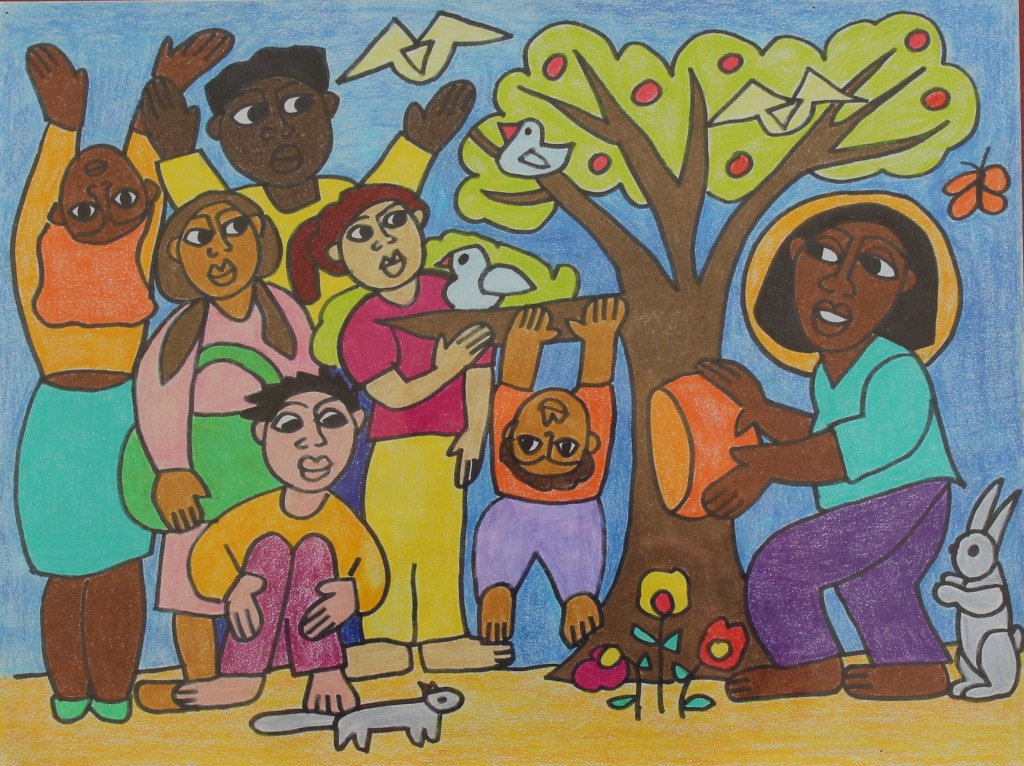 Everyone is welcome in God’s Kingdom. It’s a place of peace, love, and justice. Equity too. You’ll also find joy and have lots of fun there! A good place to experience God’s love and the kingdom is at God’s table, where all can eat and give thanks together.