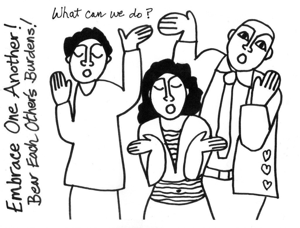 We start to help one another, embrace each other, begin to bear some of others’ burdens.