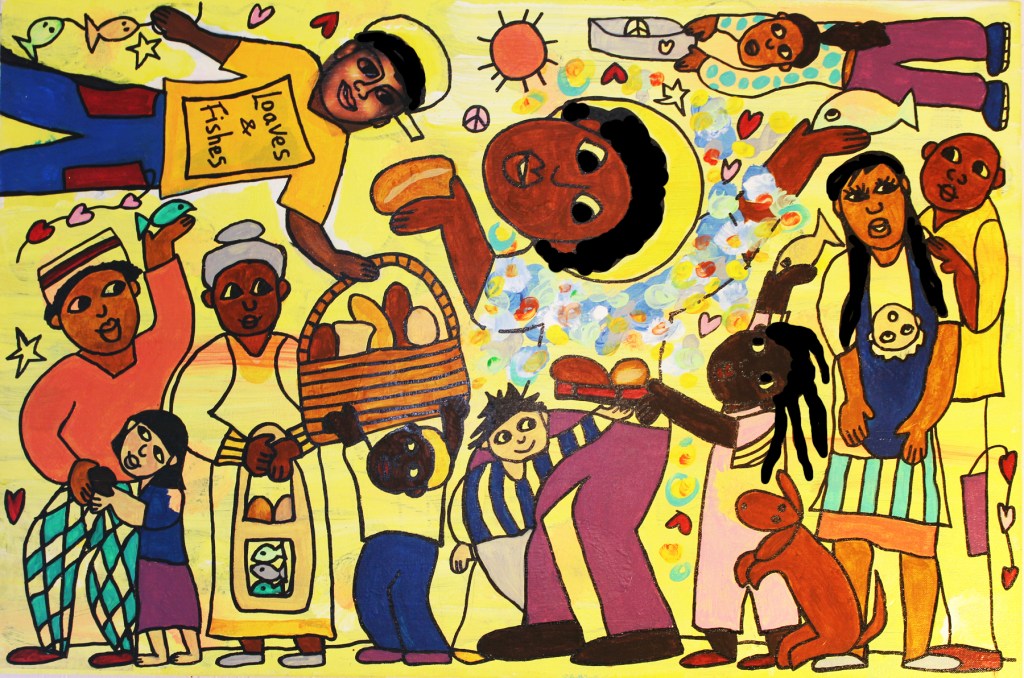 When we’re open to one another and to sharing, the Holy Spirit will move to create a miracle, where we’re all fed till we’re full and there’s extra besides. Leftover food and a superabundance of God’s blessed love. Hallelujah!